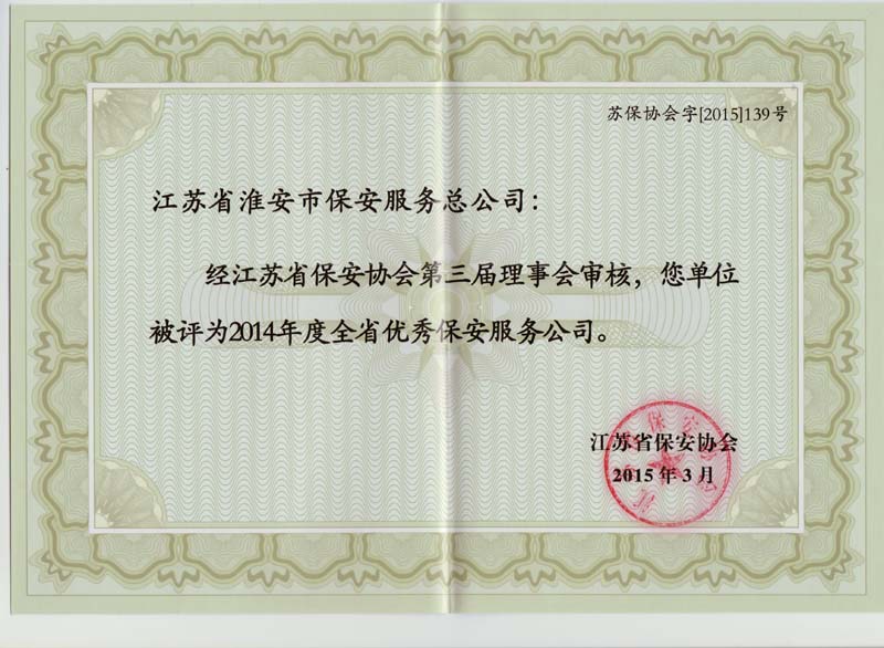 2014年度全省優(yōu)秀保安服務公司